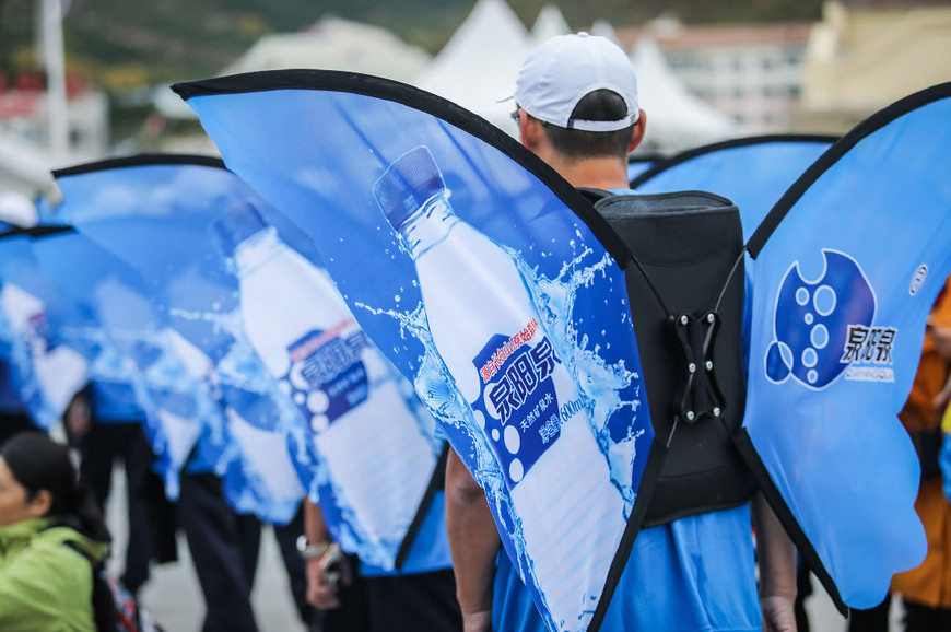 ?????? 來自全國各地參加馬拉松的選手,為了給參賽選手提供優質的補給服務,泉陽泉的工作人員徹夜在賽道沿途20多公里搭建9個補水區,配送17000余瓶天然礦泉水,用多少個不眠之夜換來了大賽前的萬事俱備。