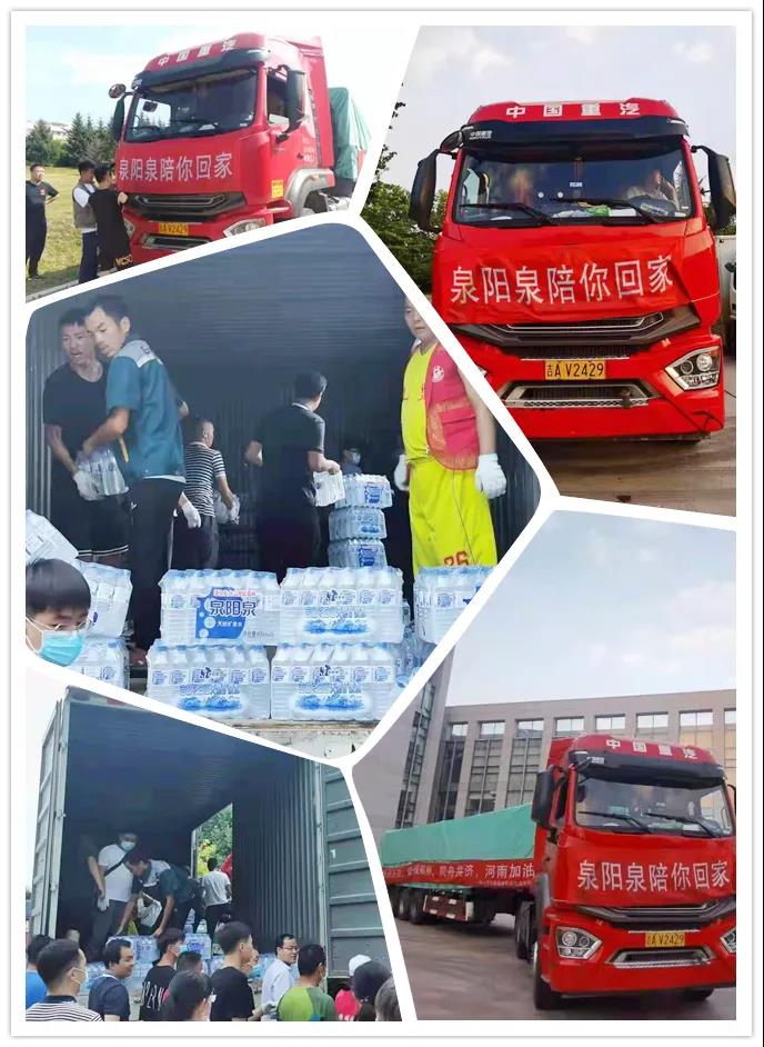 ? ? ? 今年7月中旬,河南省出現持續性極端強降雨,造成鄭州、新鄉、安陽、鶴壁等多個縣市、鄉鎮受災。河南人民群眾的生命和財產安全受到威脅。洪水肆虐,災情牽動著全國人民的心。2021年7月25日,吉林森工集團泉陽泉飲品有限公司從泉陽工廠整裝出發,穿越1800公里,馳援鄭州,為河南人民送去必要的救災物資。