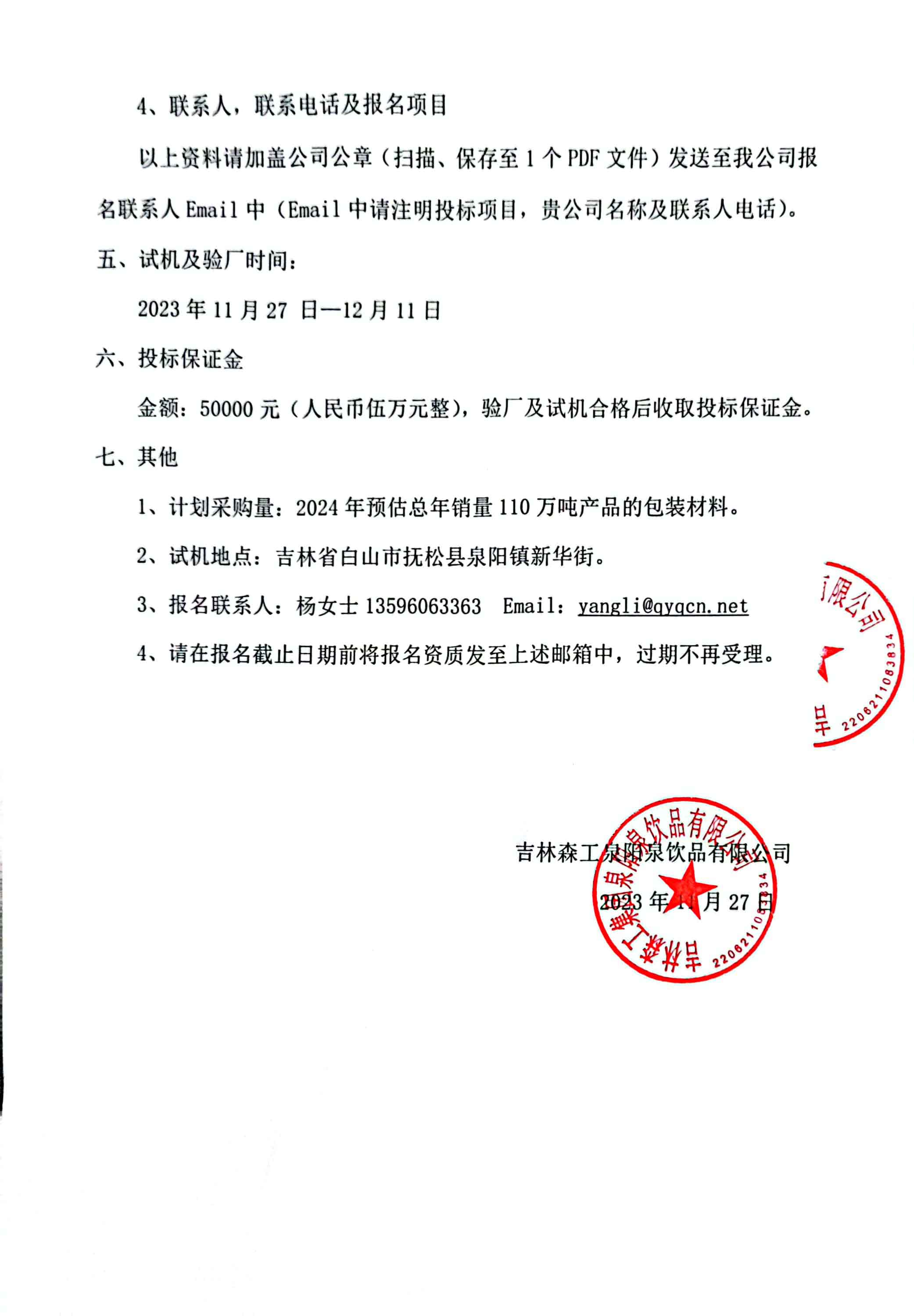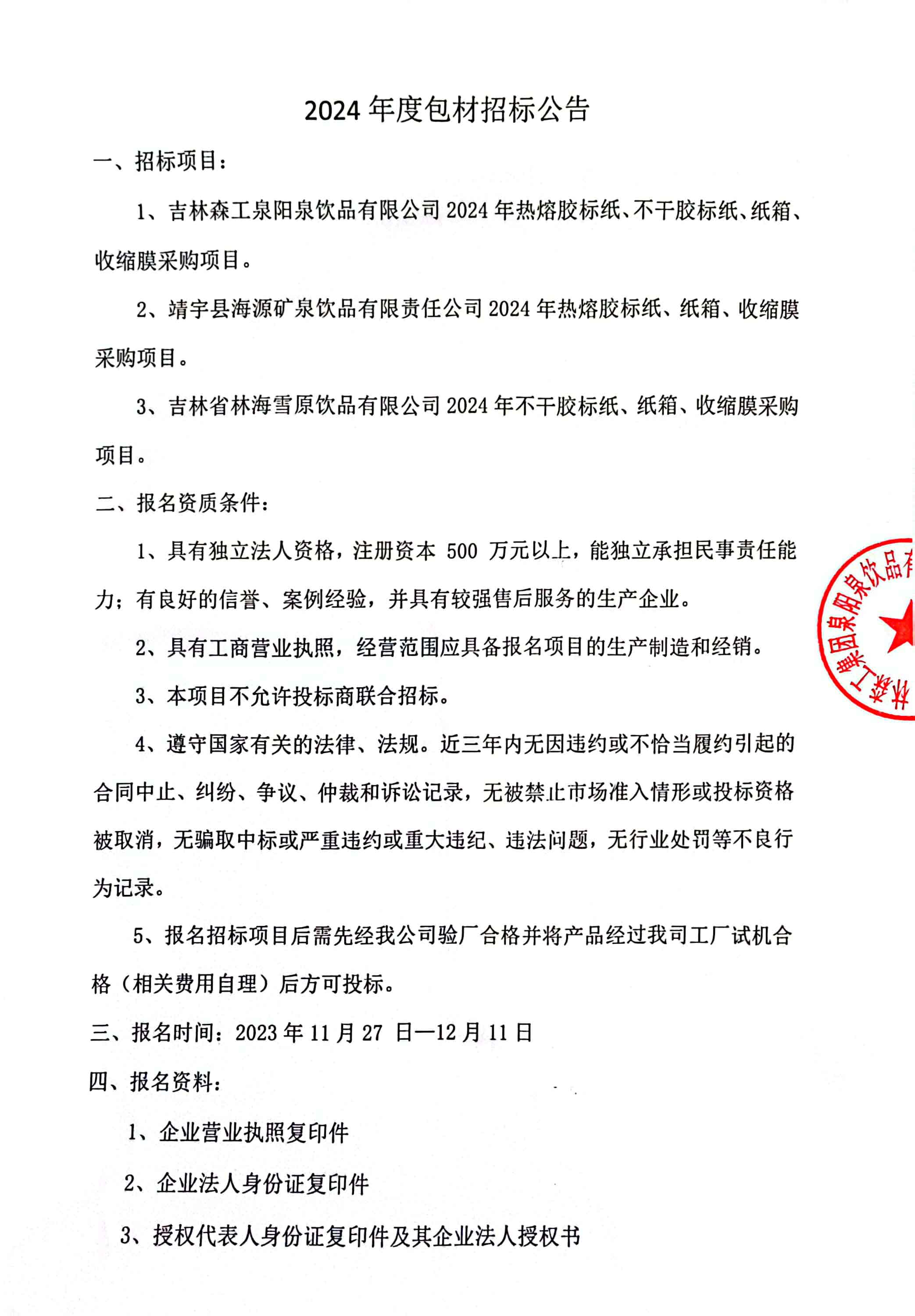 2024年包材招標公告